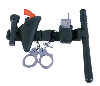 HandcuffsKeysVinyl BeltBatonPhonePistolFlashlight – Requires 2 AA Batteries – Not IncludedYou are definitely the one in charge when you accessorize your police uniform with this utility belt and included accessories. The plastic pistol, toy Walkie Talkie, working flashlight, night stick, and handcuffs all have a place on black pleather Adult Cop Belt with adjustable metal buckle. Pair this with one of our great Police Officer costumes for Halloween. Two “AA” batteries are not included with the flashlight.