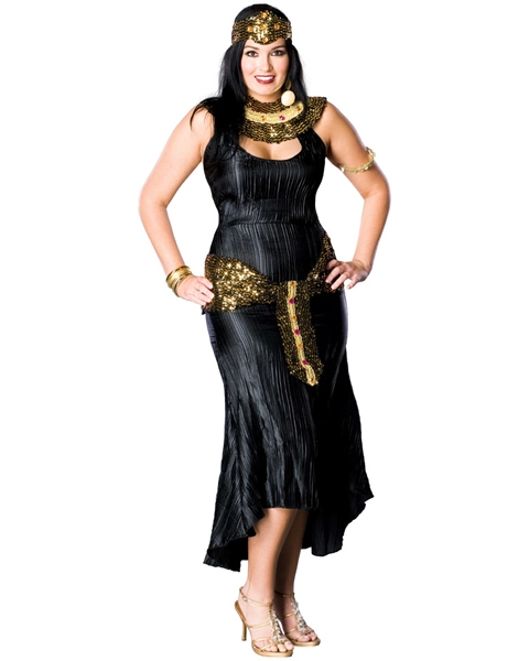 Wondering what costume to wear this year just got easier for many women with this incredibly sexy Cleopatra costume. A sultry, sleek costume such as this is only for a certain kind of woman, one that has Queen blood running in the family. This great looking costume features a black, swoop neck three-quarter length dress. It’s sleeveless, form fitting, and has an uneven hemline. It is the definition of deep beauty, only fit for a queen. The package with the dress also includes the bejeweled waist sash, headpiece, and collar. When all is worn, you truly appear as though you are ready to be Queen of The Land, or at least Queen of the party you attend. It is sure to get you much attention and great compliments. Be prepared to make good Queen decisions though, or you may not last too long. The sexy Cleopatra costume is a classic look that has been made to look much more attractive, and you are guaranteed to have a fun filled night in it.