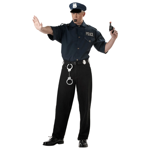 Run the street professionally with this Cop Shirt and Hat Police Set. This set includes a Police shirt with embroidery, hat with Special Polie badge emblem, handucffs, and a badge.