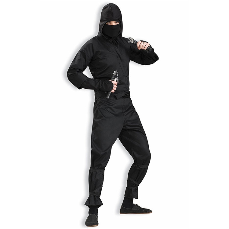 Now you can be a ninja warrior with great stealth and agility! This Deluxe Ninja Adult Costume includes a hood, a mask, a shirt, pants, a belt, arm ties, and leg ties. Toy nunchucks are sold separately.