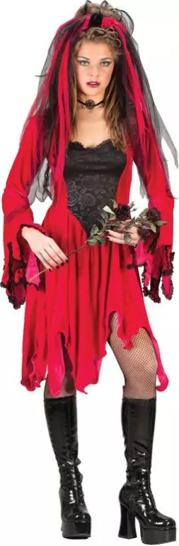 She’s so HOT!Costume includes: Two-tone, long drop sleeve dress. Shredded dress bottom, brocade front inset with accenting head piece. Available size: