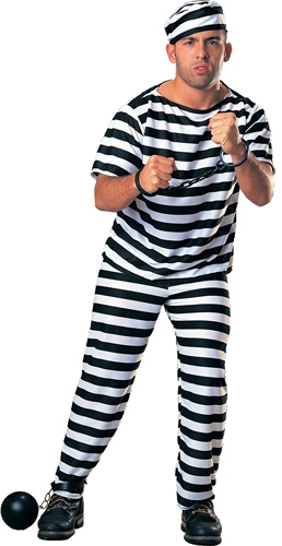 This is the Prisoner Man Adult Costume by Rubie’s Costumes. This costume includes a black and white hat, a black and white prisoner style shirt, and pants. Handcuffs and ball & chain sold separately.