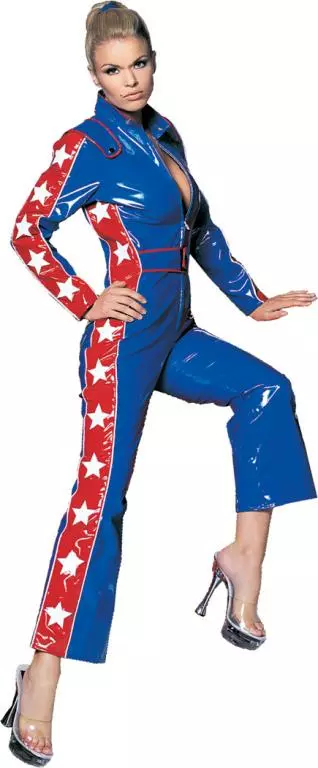 Wow Look At This Sexy Racer!Costume includes: Tight fitting vinyl jumpsuit with zipper front and red stripe with white stars accents on both sides.Available sizes: