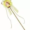 DressDetachable Wings**Wand not included.Transport yourself to Never-Never Land as Tinkerbell this Halloween. This glittery Tinkerbell costume has velcro closures in the back and is adorned with green sequins, pink flowers, a silver lace-up front, and the name Tinkerbell printed on the chest. A pair of detachable fairy wings is also included and is attached in the back by velcro. Become everyone’s favorite fairy this Halloween.