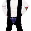 The ultimate Buzz Lightyear costume for intergalactic adventures. Includes white bodysuit with green trim and attached Buzz Lightyear chest piece, purple hood and white boot spats with green trim. Now he’s ready to explore space and fly to infinity and beyond, then be back in time for dinner, of course.